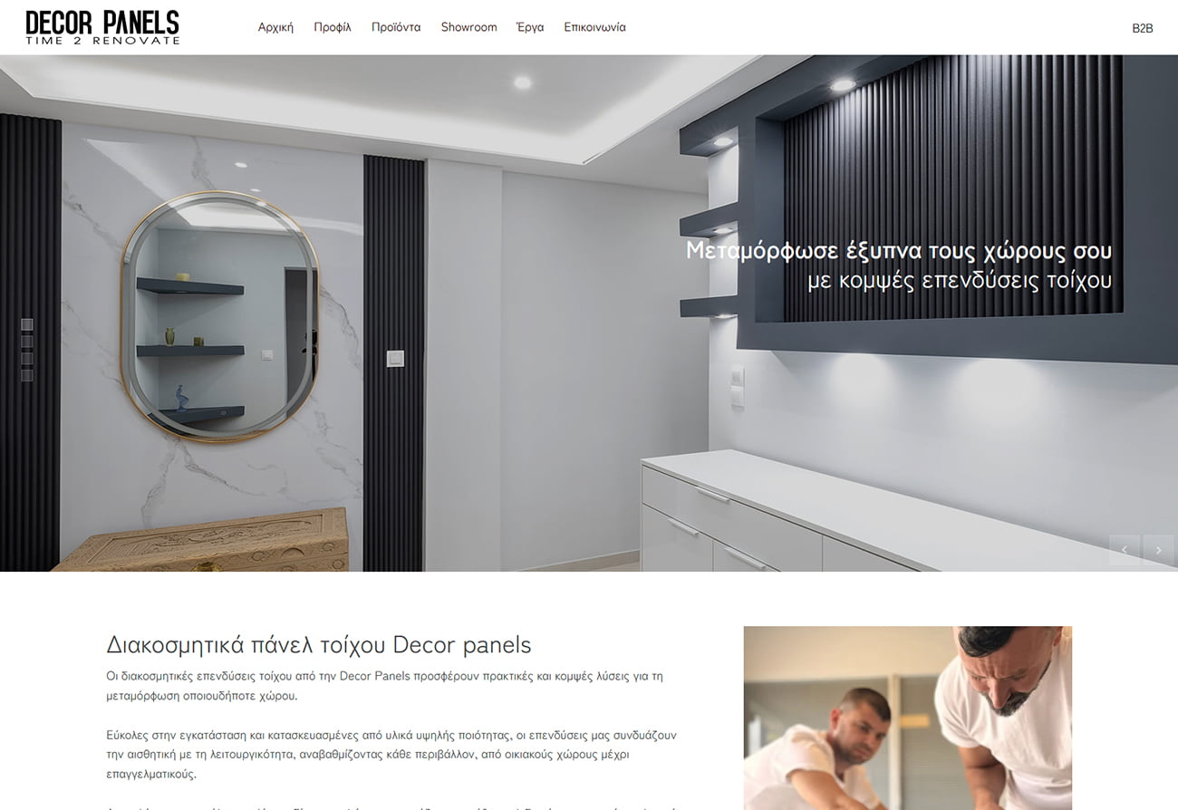 Αναλάβαμε τη δημιουργία της νέας ιστοσελίδας της Decor Panels, με στόχο την ανάδειξη της ποικιλίας και της ποιότητας των προϊόντων της. Δημιουργήσαμε έναν σύγχρονο και λειτουργικό ιστότοπο, πλήρως βελτιστοποιημένο για όλες τις συσκευές desktop, tablet, mobile, εξασφαλίζοντας μια ευχάριστη εμπειρία πλοήγησης για τους χρήστες. Η ιστοσελίδα διαθέτει φιλικό προς τον χρήστη σύστημα πλοήγησης, επιτρέποντας στους πελάτες να εξερευνούν εύκολα τις διάφορες κατηγορίες προϊόντων.